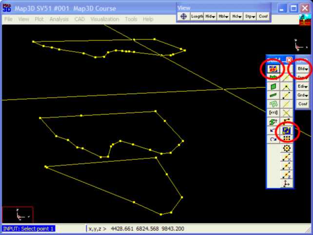 •The plans for this example are in a file called "bulk.dxf". •These are imported using the File > Open Construction Lines command.
