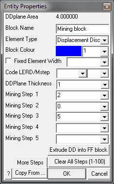 DD blocks can be extruded into 3D FF blocks simply by changing the element type from Displacement Discontinuity to Fictitious Force.