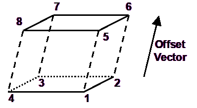 In this case corners 1 through 4 define the base of the block. The top and sides are automatically generated during the extrusion process. FF blocks can be collapsed into DD planes by changing the element type from Fictitious Force to Displacement Discontinuity. In this case the base of the block (the side defined by corners 1, 2, 3 and 4) will become the DD plane and the remainder of the block sides will be discarded.