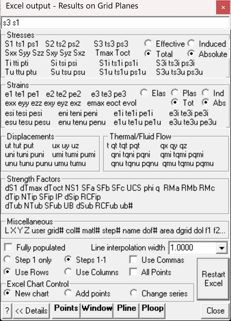 Two types of Excel plots can be created: •selected contour points. •a series of points along the length of a polyline.