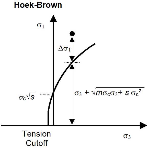 In elastic analysis the major and minor principal stresses can be used with the Mohr-Coulomb or Hoek-Brown strength criteria
